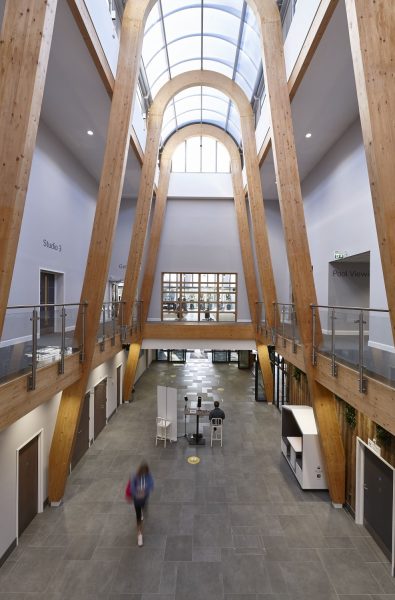 “We wanted to achieve the feeling of an outdoor path or street within the enclosed building that could become a market, a foyer to the theatre, or simply a space for people to gather,” explains Stephen Rickhards, the Architectural Director at BRL Architects. “We used timber in the large double-height central gallery to knit into the beautiful surrounding trees and the idea was to flood the area with natural light. The hope is that the community will own the space and shape its future use.”